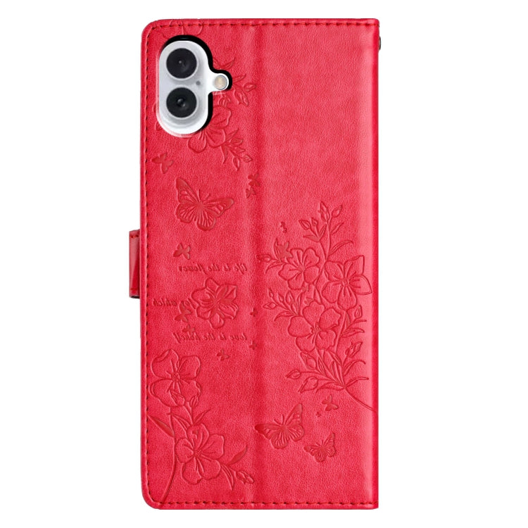 For iPhone 16 Plus Butterflies and Flowers Leather Phone Case(Red)