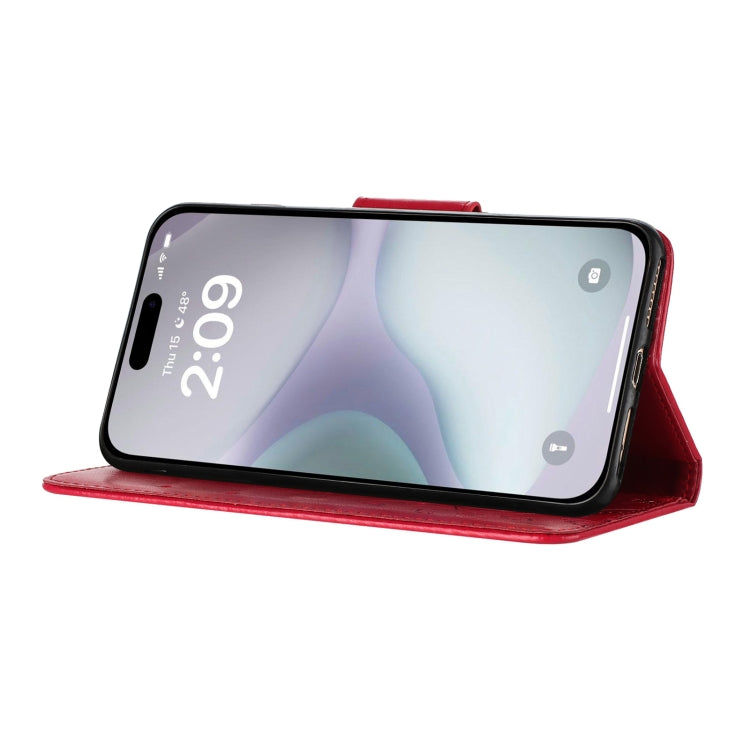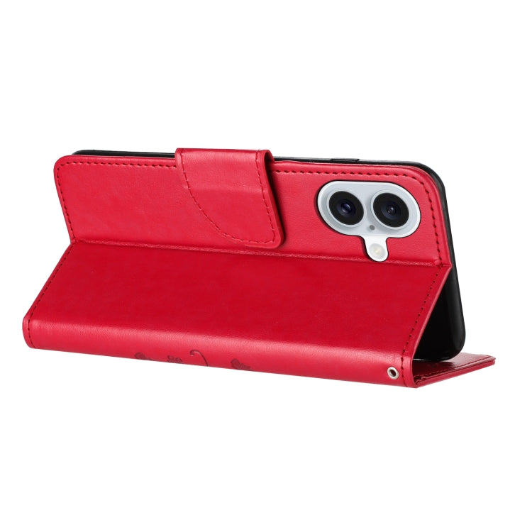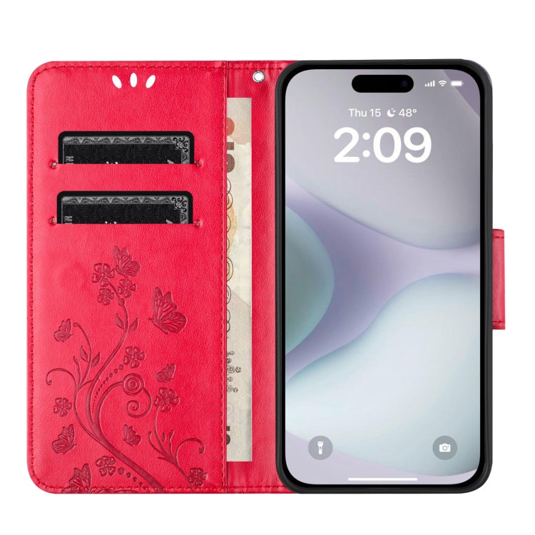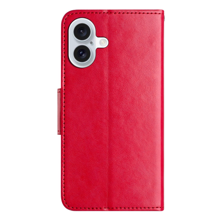 For iPhone 16 Plus Butterfly Flower Pattern Flip Leather Phone Case(Red)