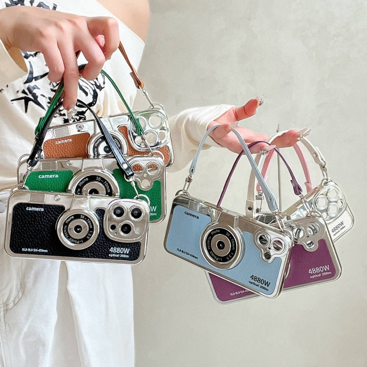2. Electroplated retro camera style with hand strap.