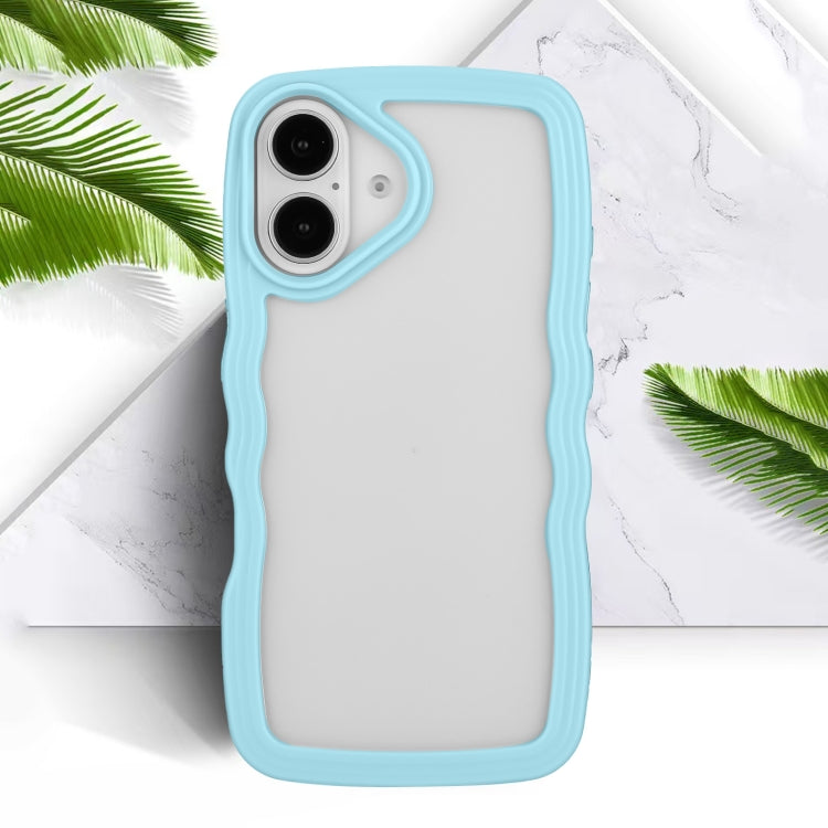 For iPhone 16 Plus Candy Color Wave TPU Clear PC Phone Case(Blue)