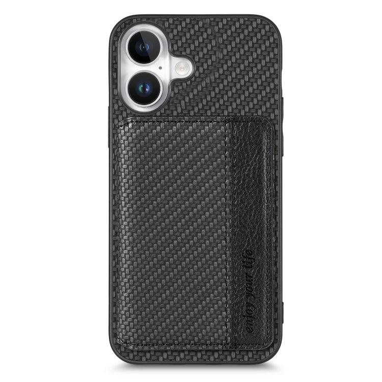 For iPhone 16 Plus Carbon Fiber Magnetic Card Wallet RFID Blocking Phone Case(Black)