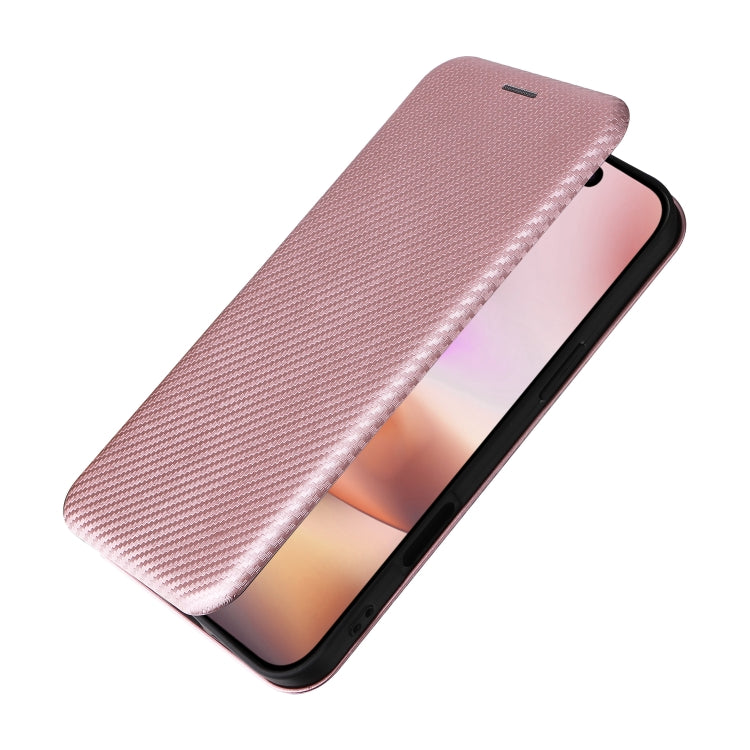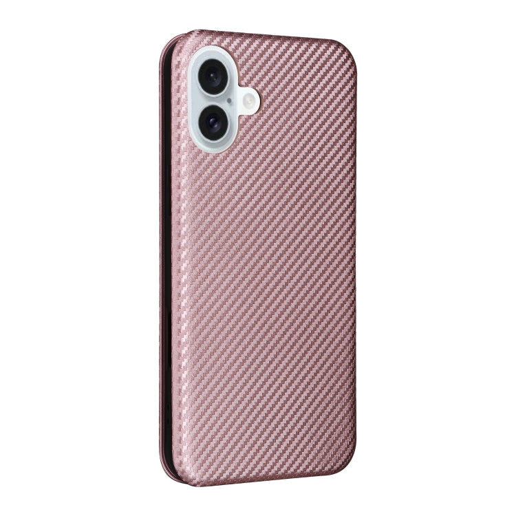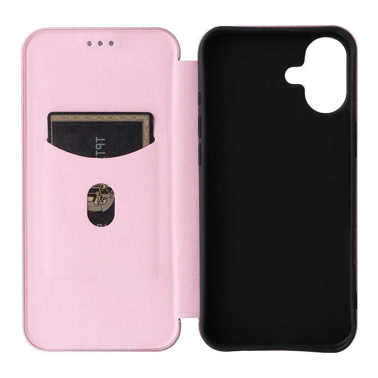 For iPhone 16 Plus Carbon Fiber Texture Flip Leather Phone Case(Pink)