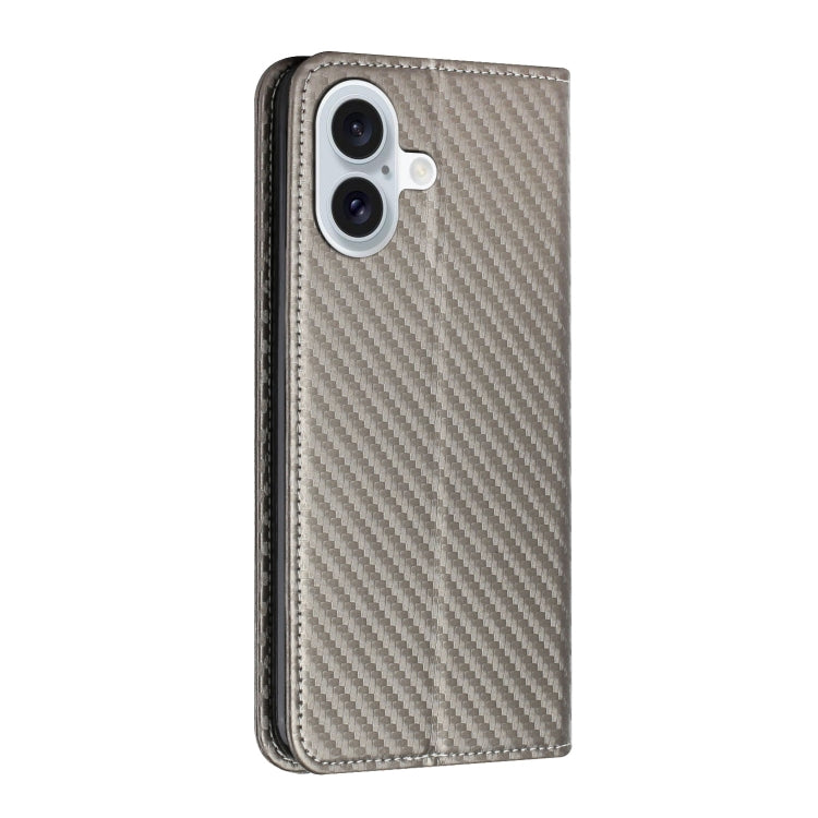 For iPhone 16 Plus Carbon Fiber Texture Magnetic Flip Leather Phone Case(Grey)
