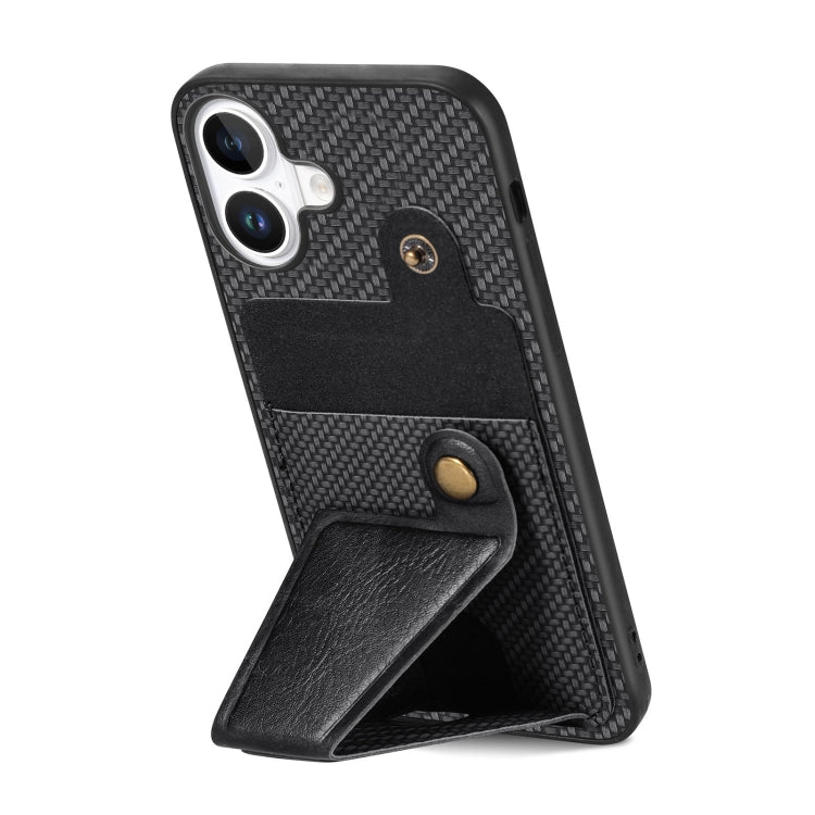 For iPhone 16 Plus Carbon Fiber Wallet Flip Card K-shaped Holder Phone Case(Black)