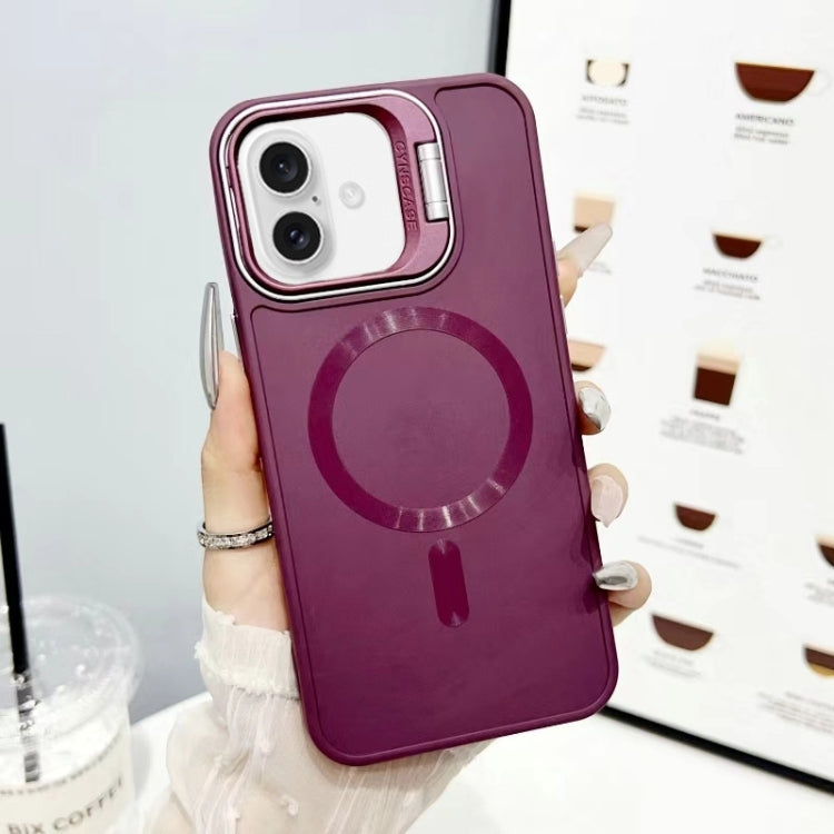 For iPhone 16 Plus CD Texture Frosted MagSafe Lens Holder Phone Case(Red)