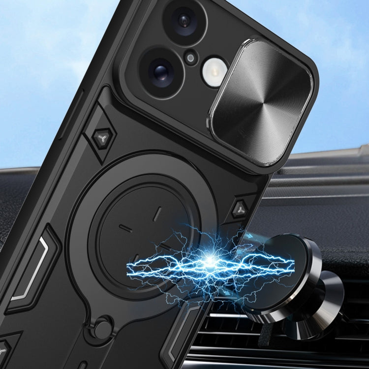 For iPhone 16 Plus CD Texture Sliding Camshield Magnetic Holder Phone Case(Pink)
