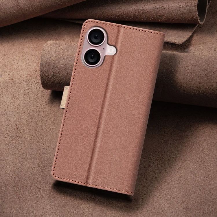 For iPhone 16 Plus Color Matching RFID Anti-theft Leather Phone Case(Brown)