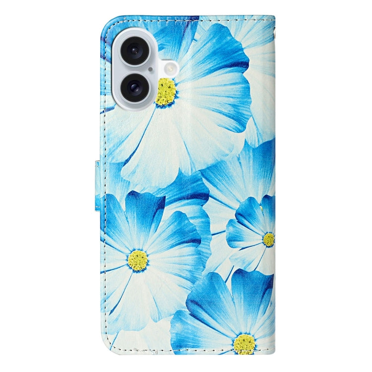 For iPhone 16 Plus Colored Drawing Marble Pattern Leather Phone Case(Blue Flower)