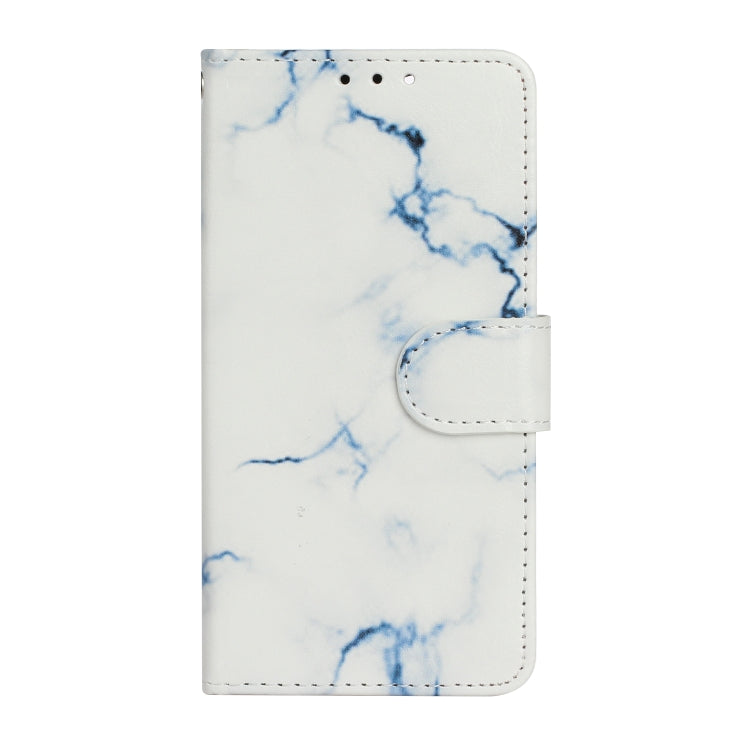 For iPhone 16 Plus Colored Drawing Marble Pattern Leather Phone Case(White Marble)