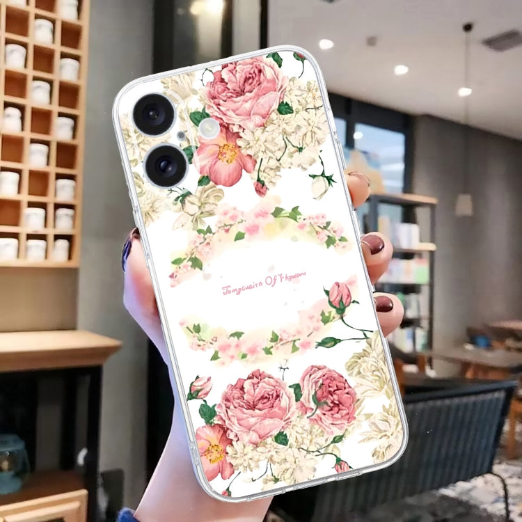 For iPhone 16 Plus Colored Drawing Pattern Transparent TPU Phone Case(Rose)