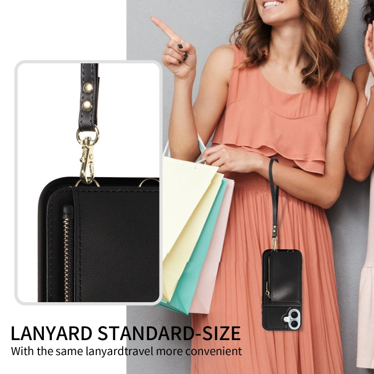 For iPhone 16 Plus Crossbody Lanyard Zipper Wallet Leather Phone Case(Black)