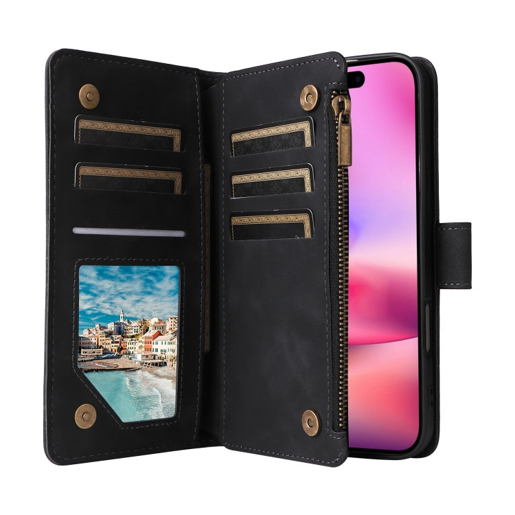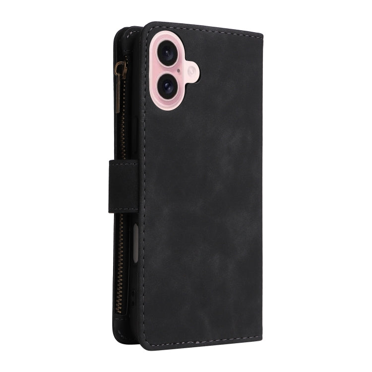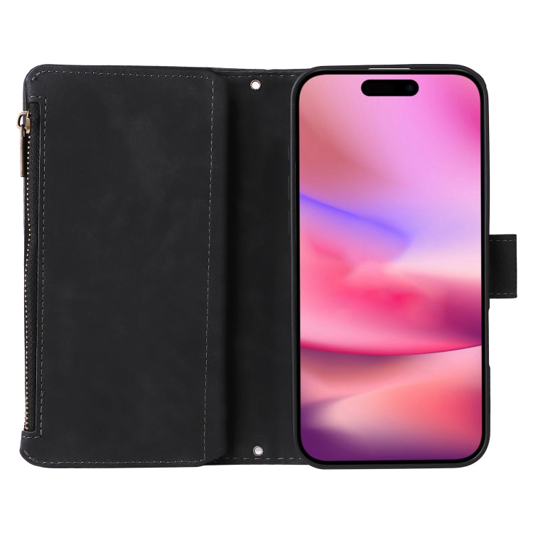 For iPhone 16 Plus Crossbody Multi-card Slot Wallet Zipper Leather Phone Case(Black)