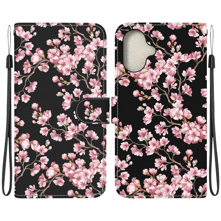 For iPhone 16 Plus Crystal Texture Colored Drawing Leather Phone Case(Plum Bossom)