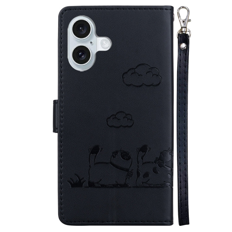 For iPhone 16 Plus Cute Cats RFID Leather Phone Case(Black)