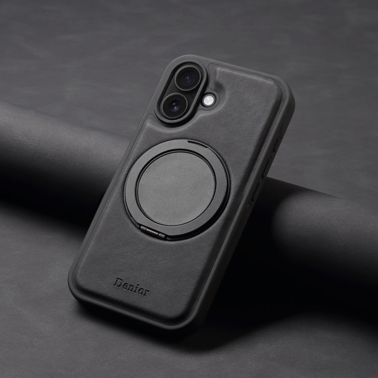 For iPhone 16 Plus Denior A14 Skin Feel Rotating Holder MagSafe Phone Case(Black)