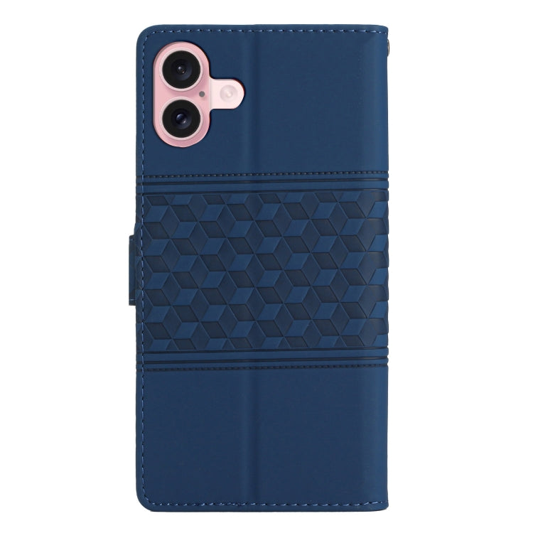 For iPhone 16 Plus Diamond Embossed Skin Feel Leather Phone Case(Dark Blue)