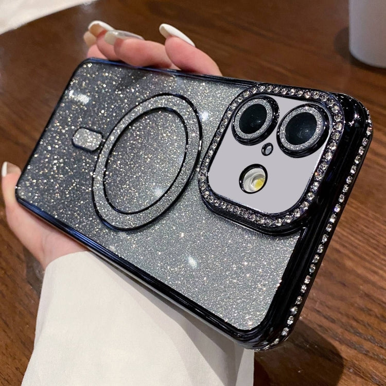For iPhone 16 Plus Diamond Gradient Glitter Plated MagSafe Phone Case(Black)