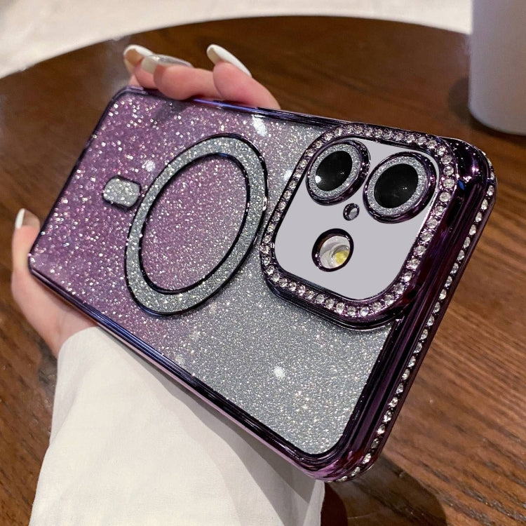 For iPhone 16 Plus Diamond Gradient Glitter Plated MagSafe Phone Case(Purple)