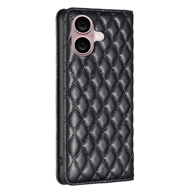 For iPhone 16 Plus Diamond Lattice Magnetic Leather Flip Phone Case(Black)