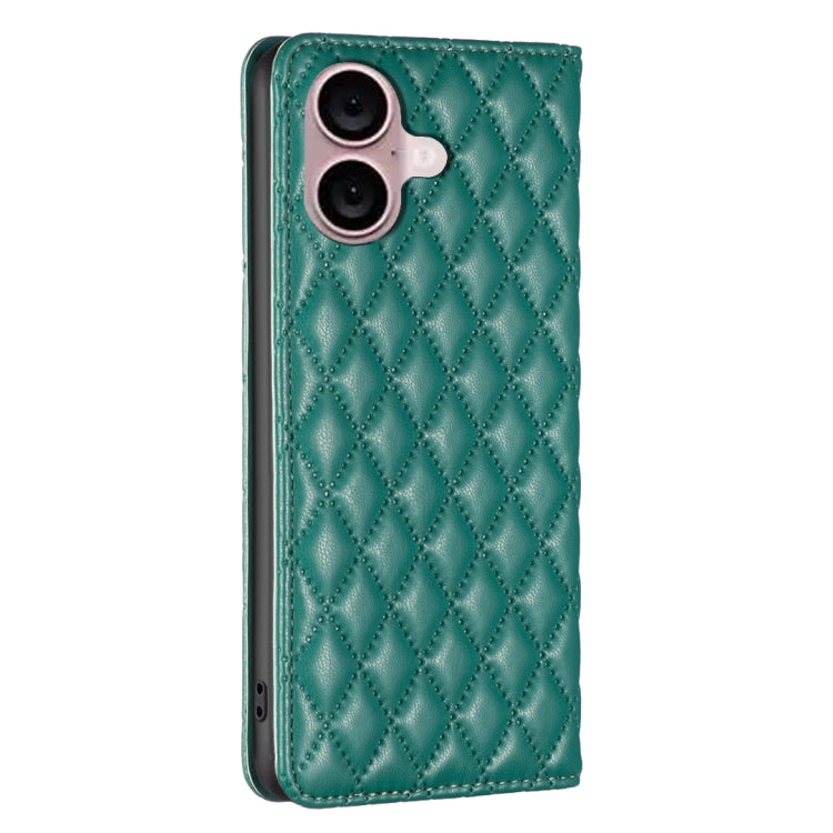 For iPhone 16 Plus Diamond Lattice Magnetic Leather Flip Phone Case(Green)