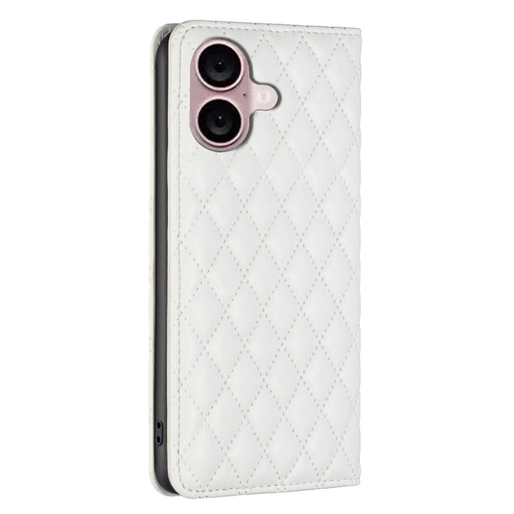 For iPhone 16 Plus Diamond Lattice Magnetic Leather Flip Phone Case(White)