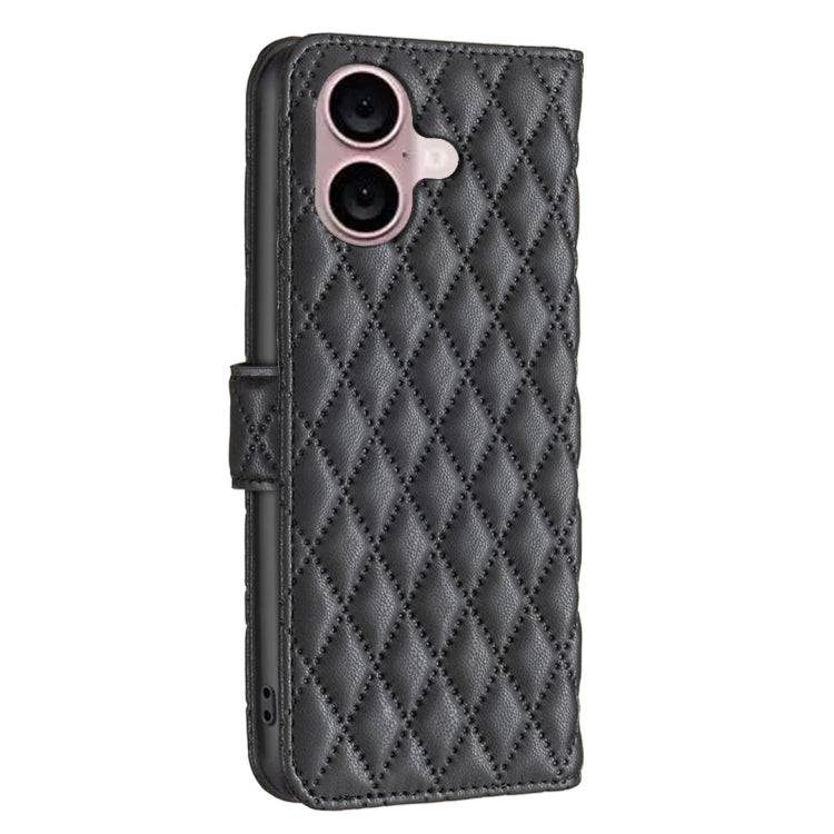 For iPhone 16 Plus Diamond Lattice Wallet Flip Leather Phone Case(Black)