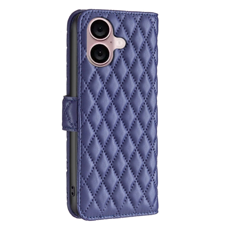 For iPhone 16 Plus Diamond Lattice Wallet Flip Leather Phone Case(Blue)