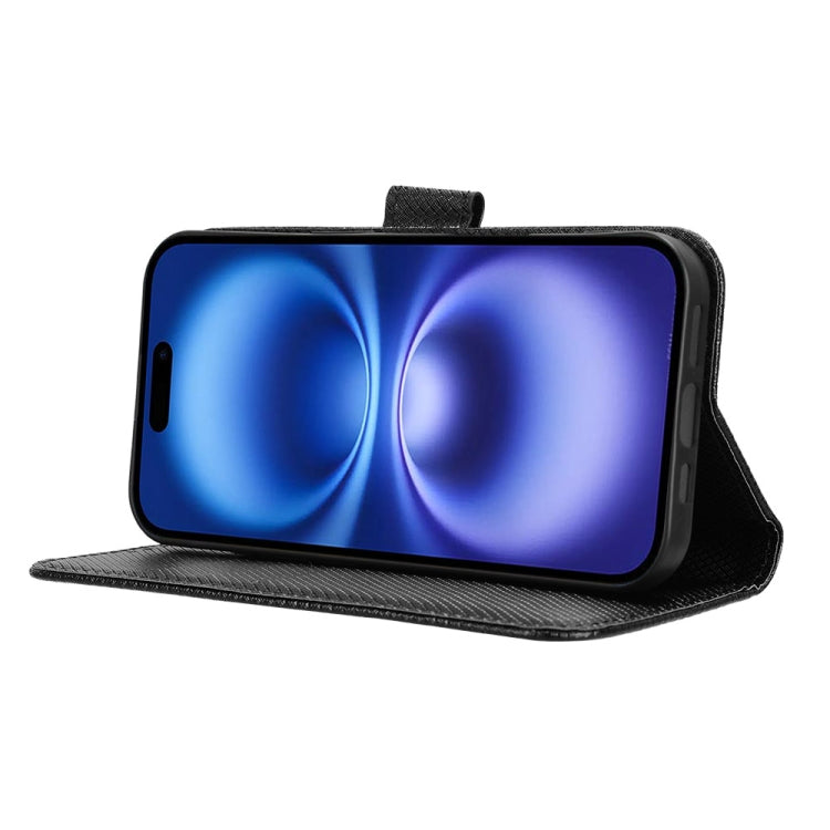 For iPhone 16 Plus Diamond Texture Leather Phone Case(Black)