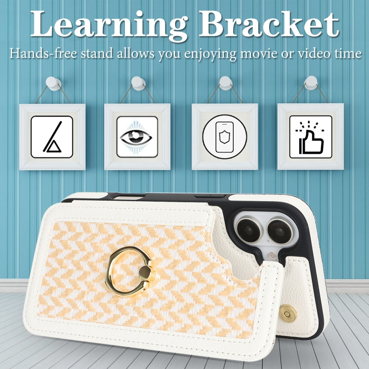 For iPhone 16 Plus Double Bckle Card Slot Full Coverage Phone Case with Cross-body Strap(White)