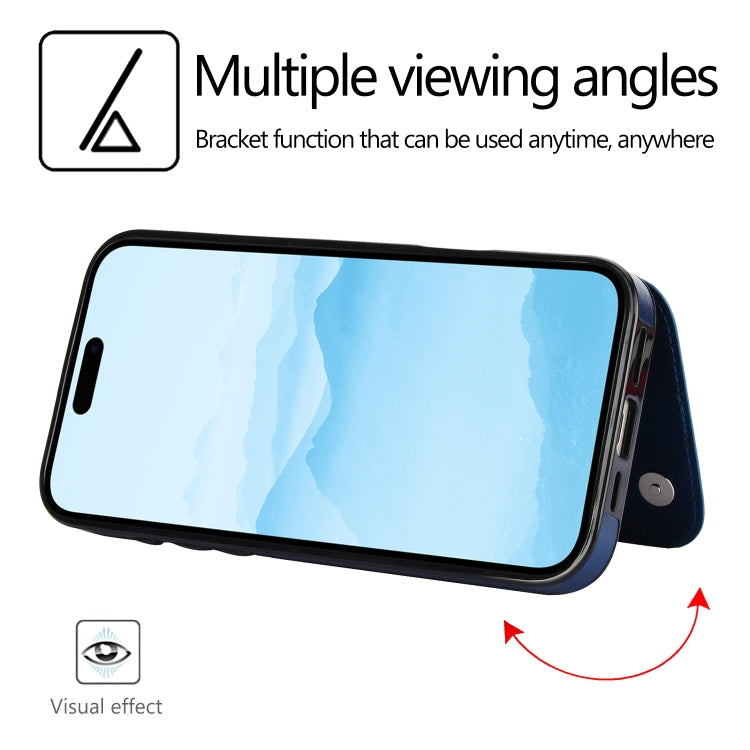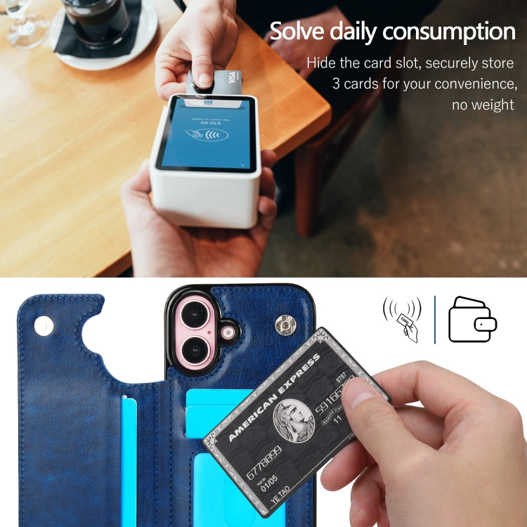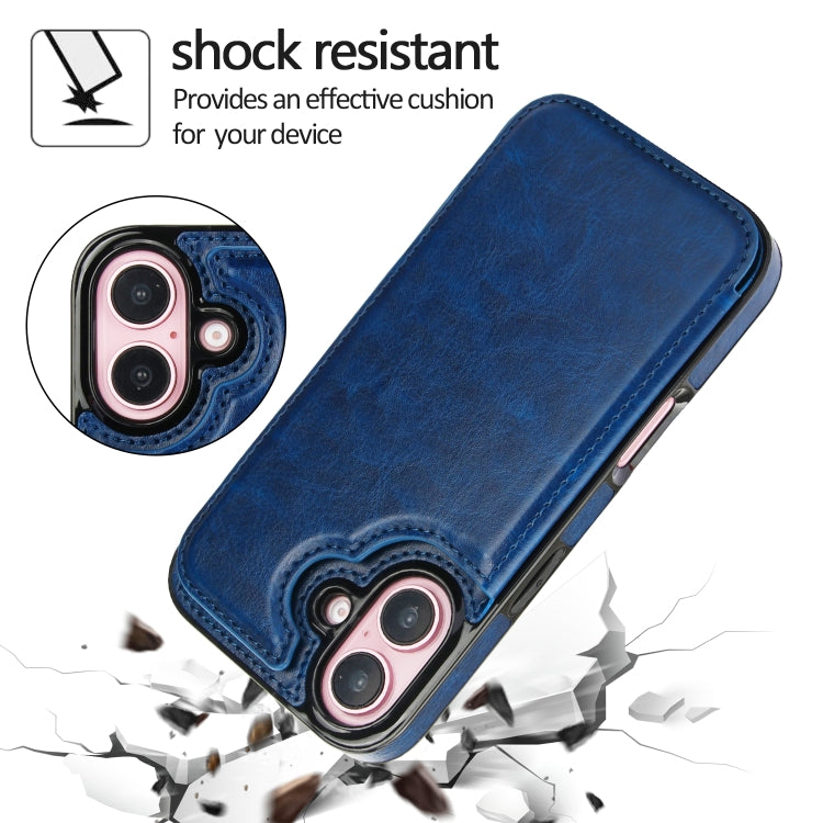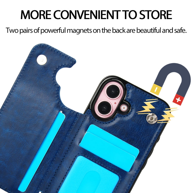 For iPhone 16 Plus Double Buckle Crazy Horse Texture PU Phone Case(Blue)