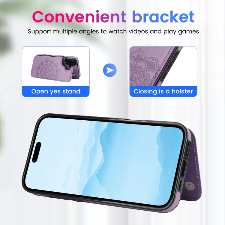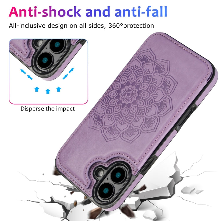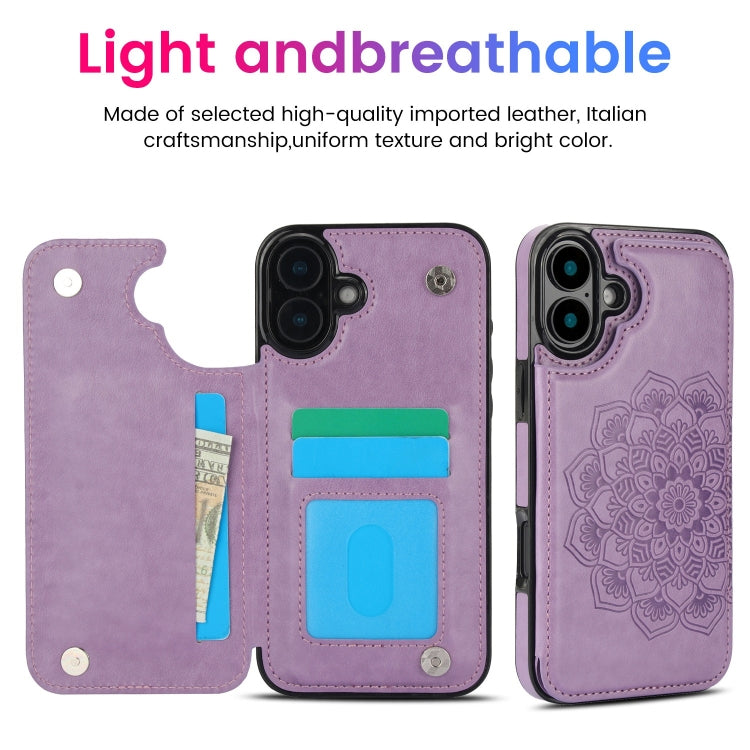 For iPhone 16 Plus Double Buckle Mandala Leather Wallet Back Cover Phone Case(Purple)