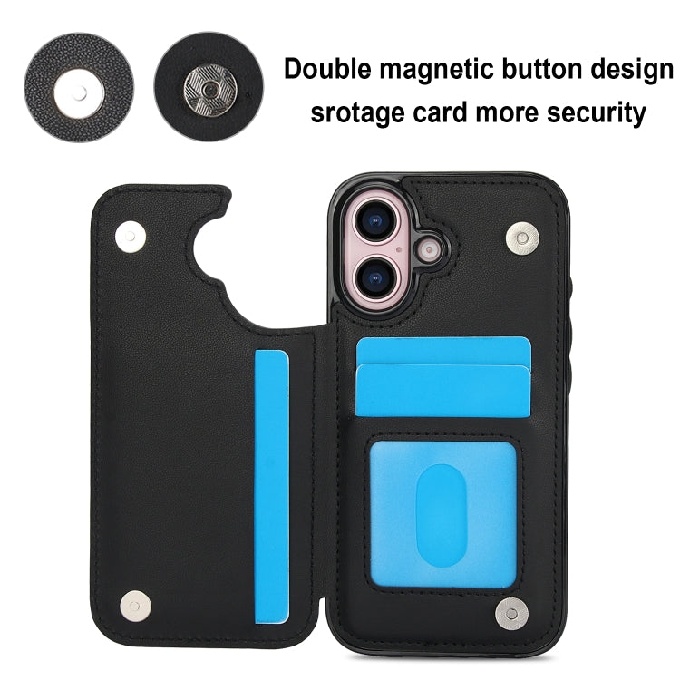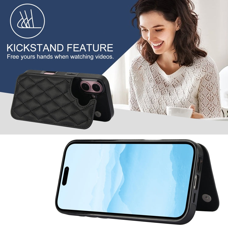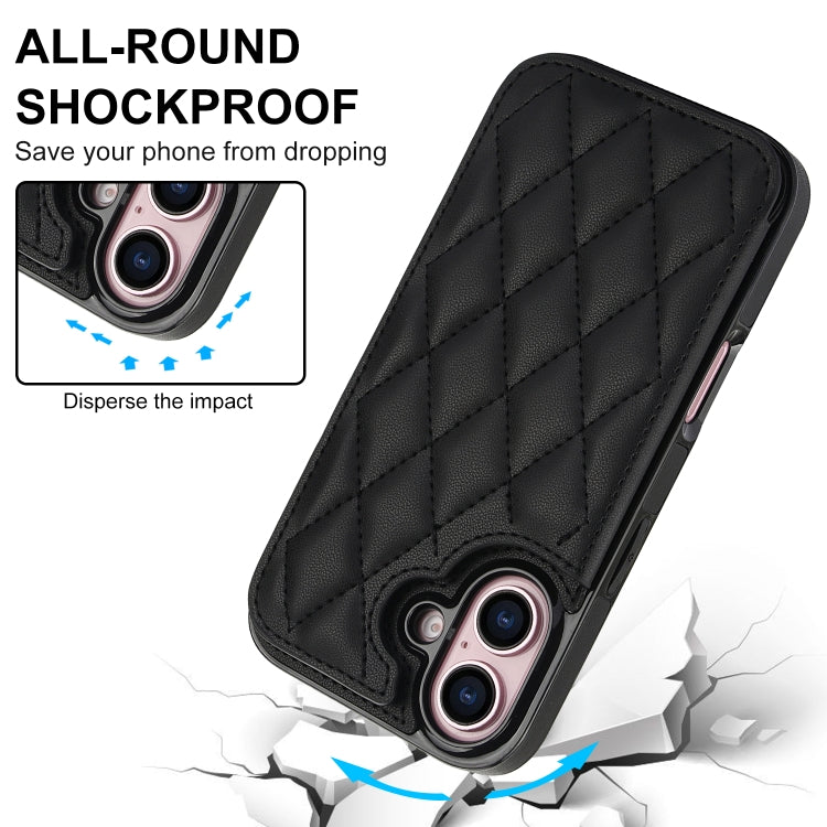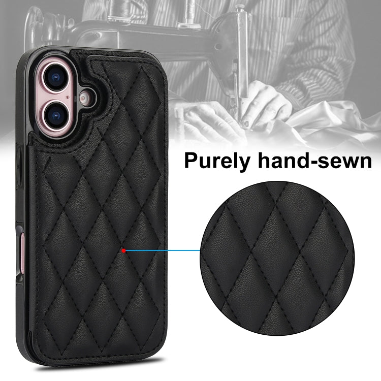 For iPhone 16 Plus Double Buckle Rhombic PU Leather Phone Case(Black)