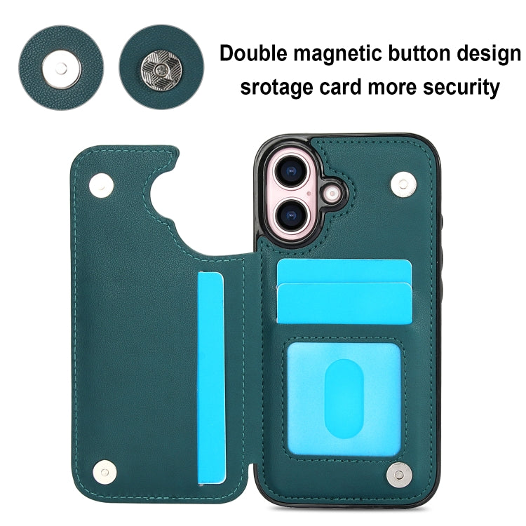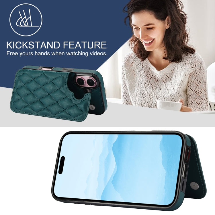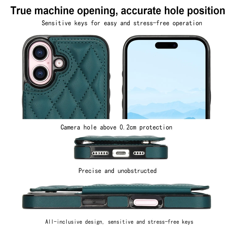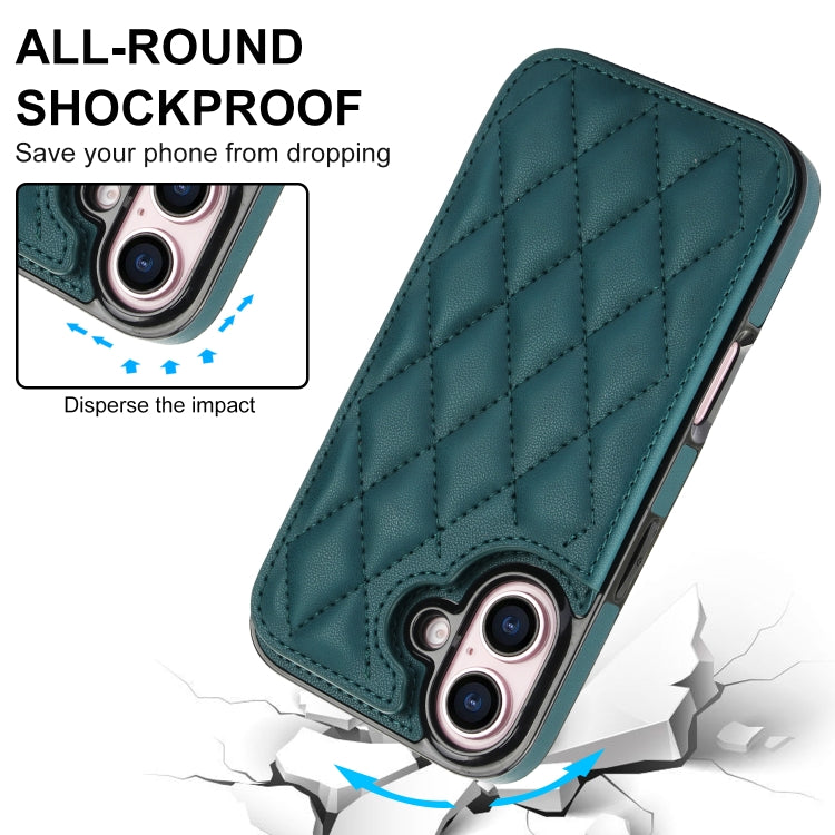For iPhone 16 Plus Double Buckle Rhombic PU Leather Phone Case(Green)