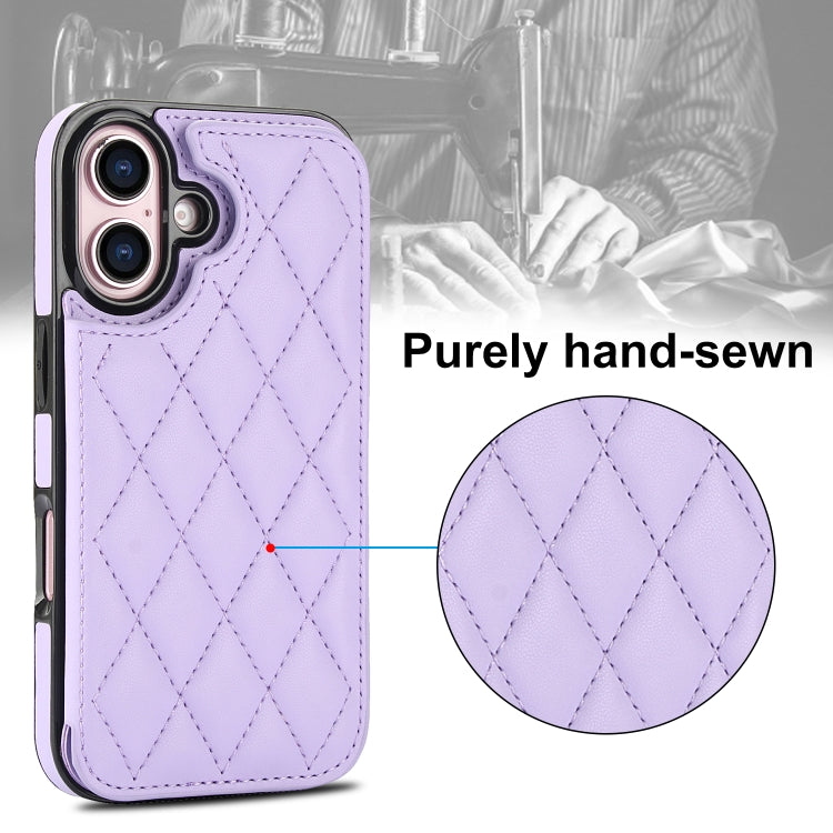 For iPhone 16 Plus Double Buckle Rhombic PU Leather Phone Case(Purple)