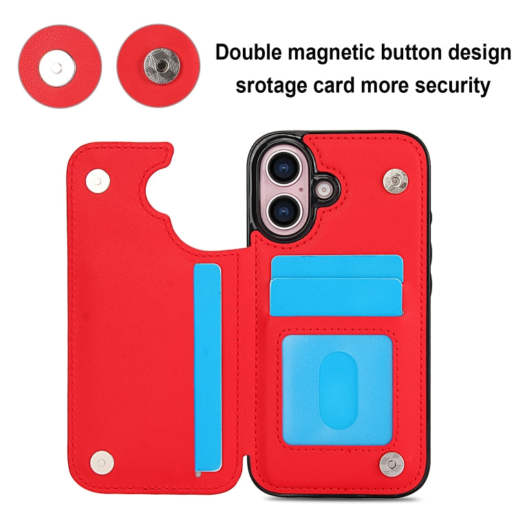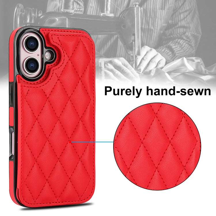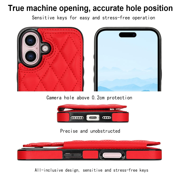 For iPhone 16 Plus Double Buckle Rhombic PU Leather Phone Case(Red)