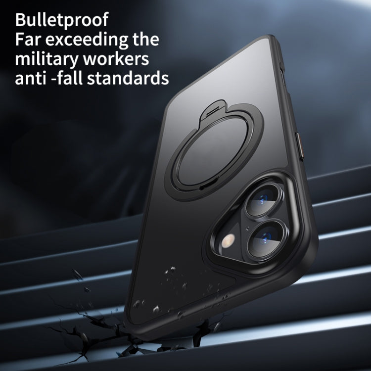 For iPhone 16 Plus Double Ring MagSafe Magnetic Holder Phone Case(Matte Grey)