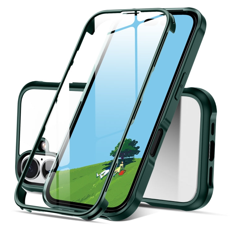 For iPhone 16 Plus Double-sided Plastic Glass Phone Protective Case(Dark Green)