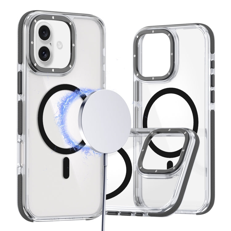 For iPhone 16 Plus Dual-Color Clear Acrylic Hybrid TPU MagSafe Phone Case(Black)