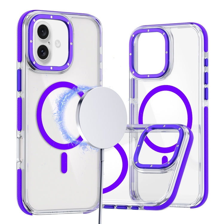 For iPhone 16 Plus Dual-Color Clear Acrylic Hybrid TPU MagSafe Phone Case(Purple)