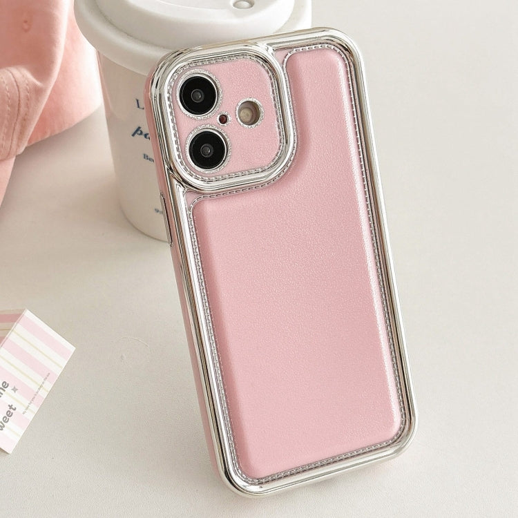 For iPhone 16 Plus Electroplated Edge Frosted Leather TPU Phone Case(Pink)