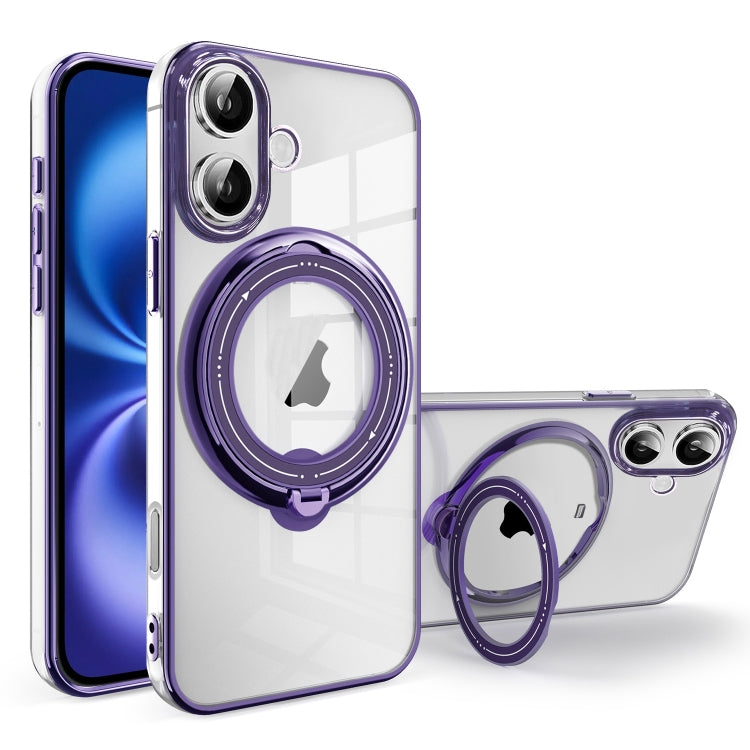For iPhone 16 Plus Electroplating MagSafe 360 Degree Rotation Holder Shockproof Phone Case(Dark Purple)