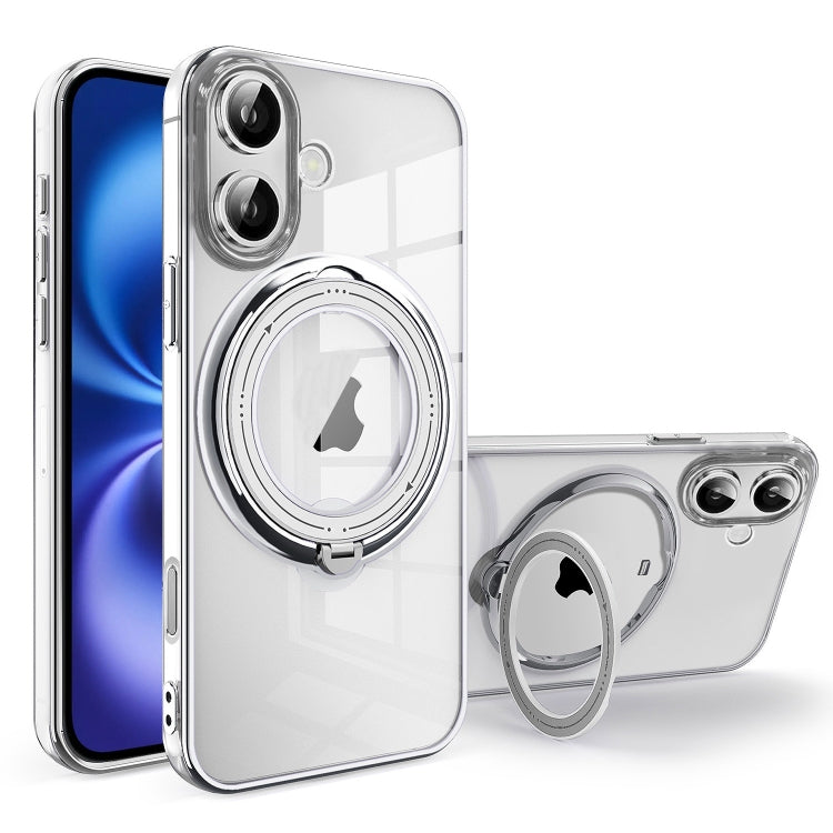 For iPhone 16 Plus Electroplating MagSafe 360 Degree Rotation Holder Shockproof Phone Case(Silver)