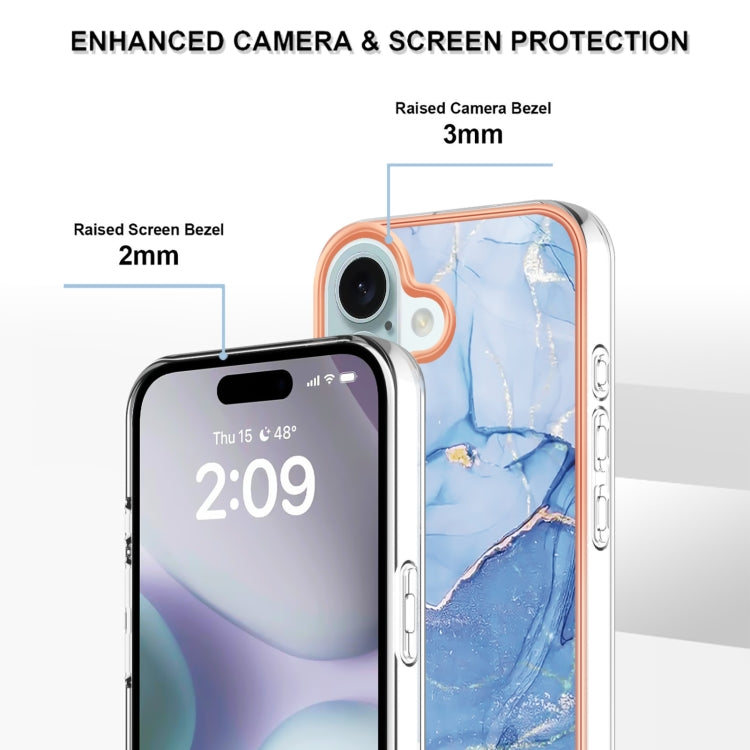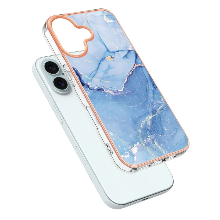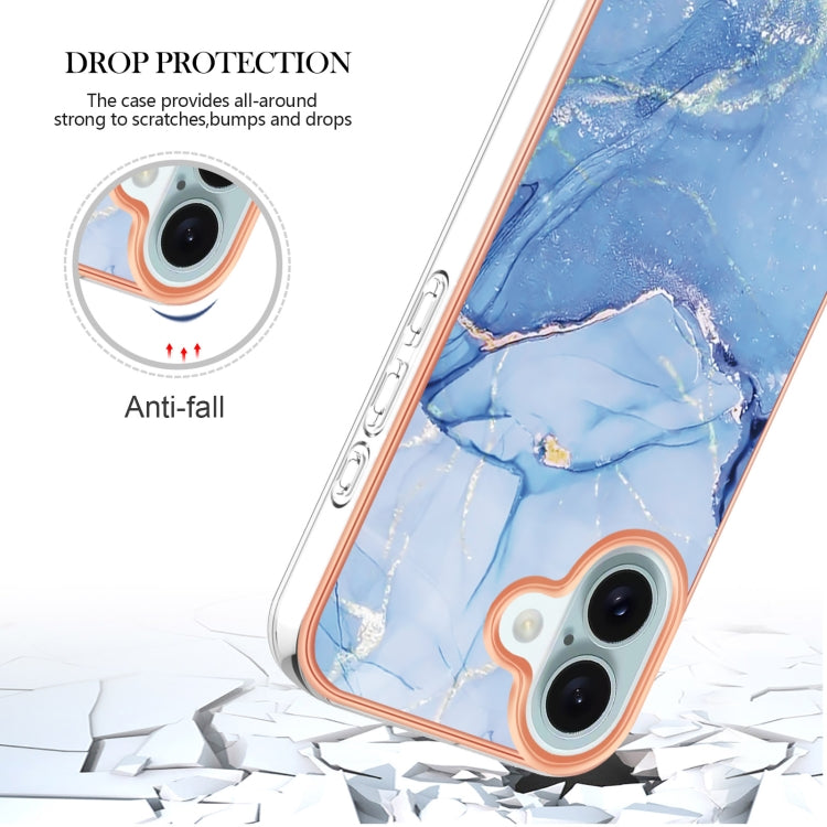 For iPhone 16 Plus Electroplating Marble Dual-side IMD Phone Case(Blue 018)