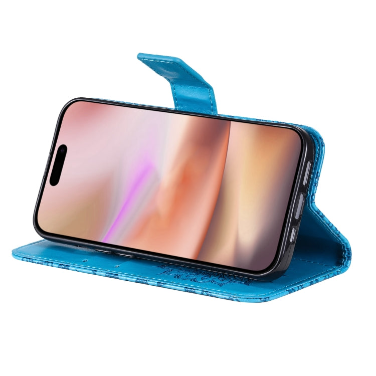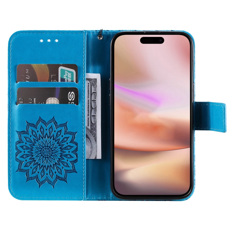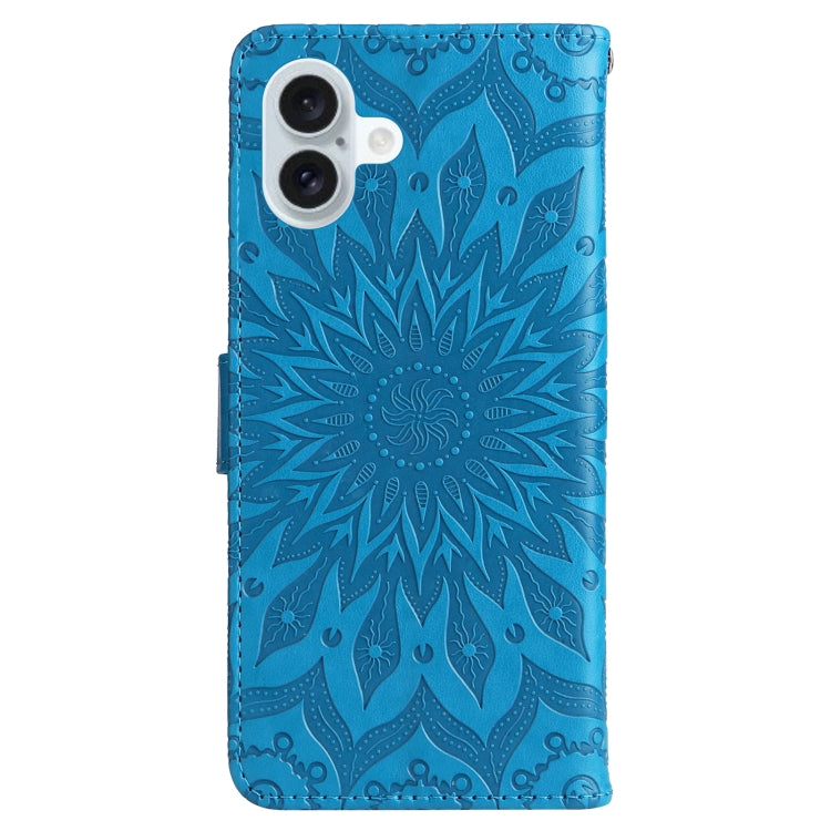 For iPhone 16 Plus Embossed Sunflower Pattern Flip Leather Phone Case(Blue)
