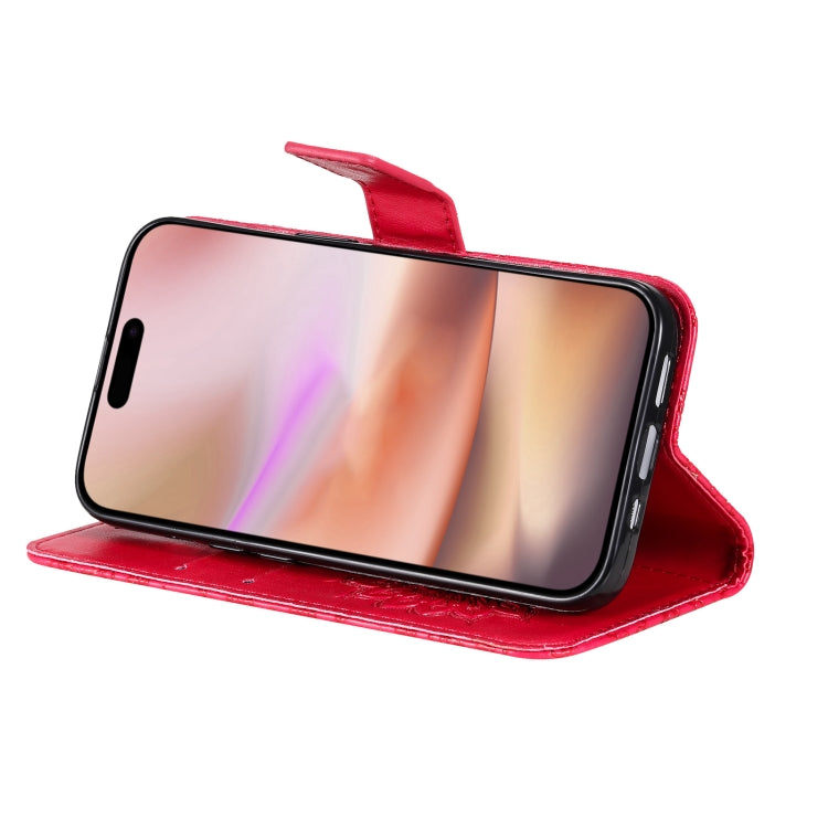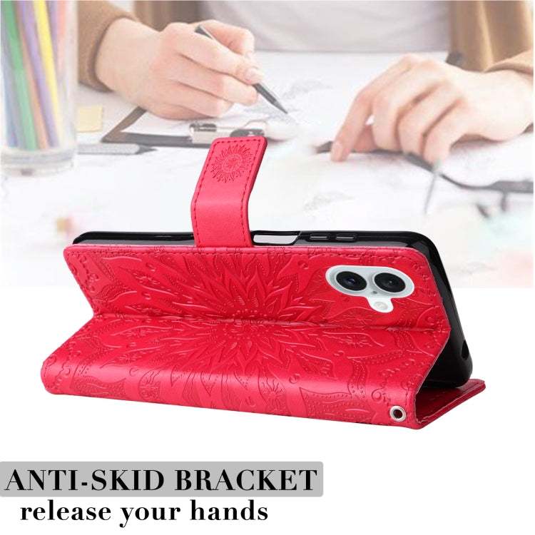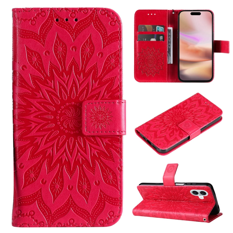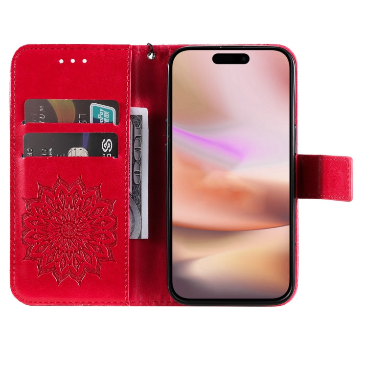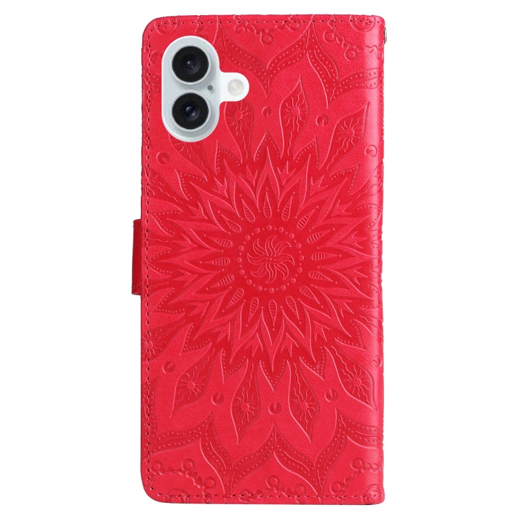 For iPhone 16 Plus Embossed Sunflower Pattern Flip Leather Phone Case(Red)