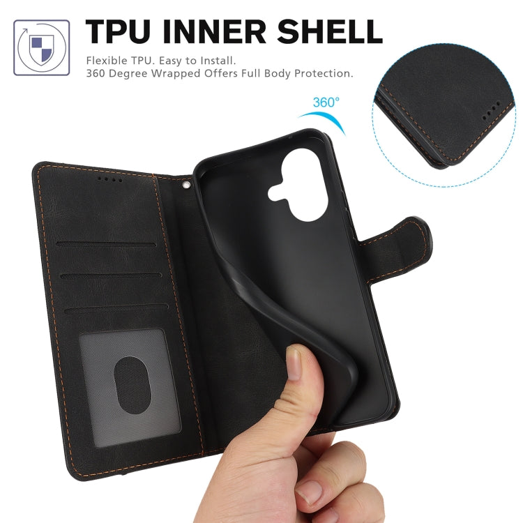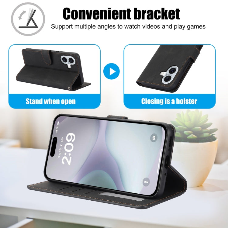 For iPhone 16 Plus Fantasy Skin-feel Calfskin Texture Leather Phone Case(Black)