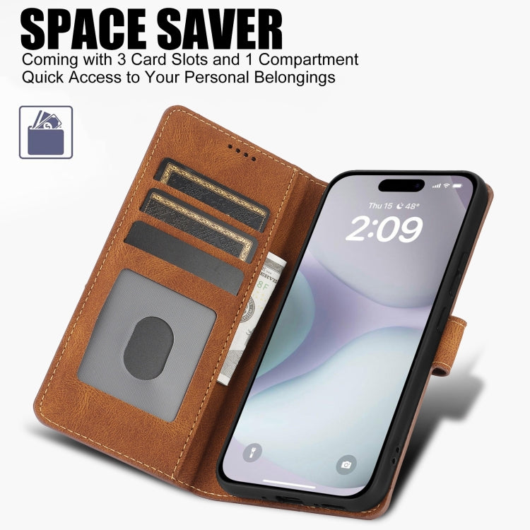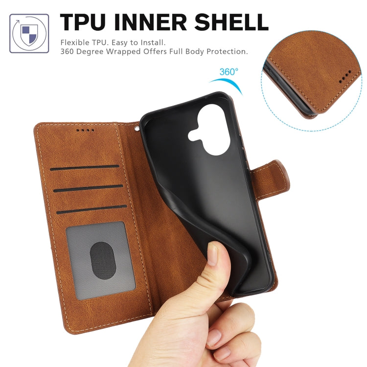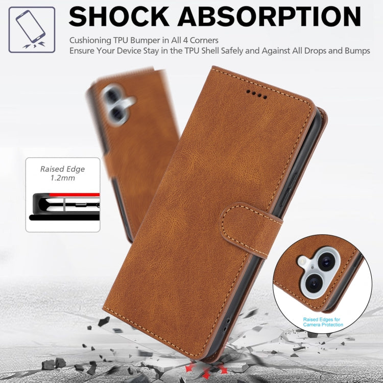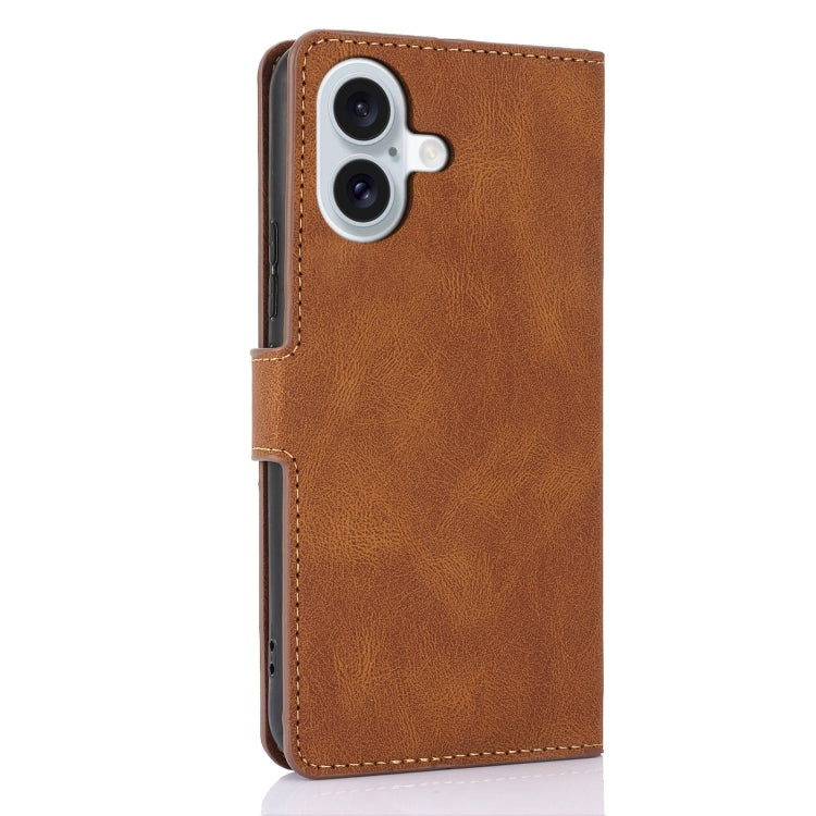 For iPhone 16 Plus Fantasy Skin-feel Calfskin Texture Leather Phone Case(Brown)