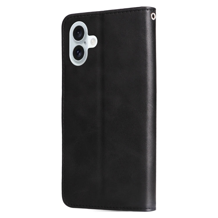 For iPhone 16 Plus Fashion Calf Texture Zipper Leather Phone Case(Black)