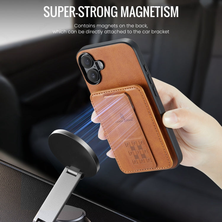 For iPhone 16 Plus Fierre Shann Oil Wax Cow Leather Card Holder Back Phone Case(Brown)