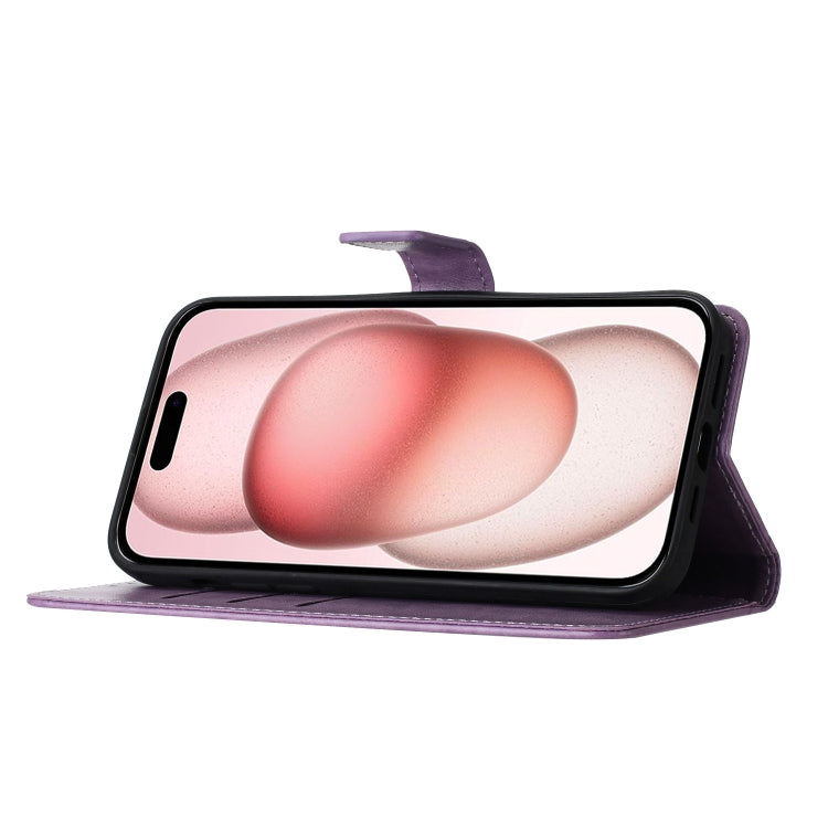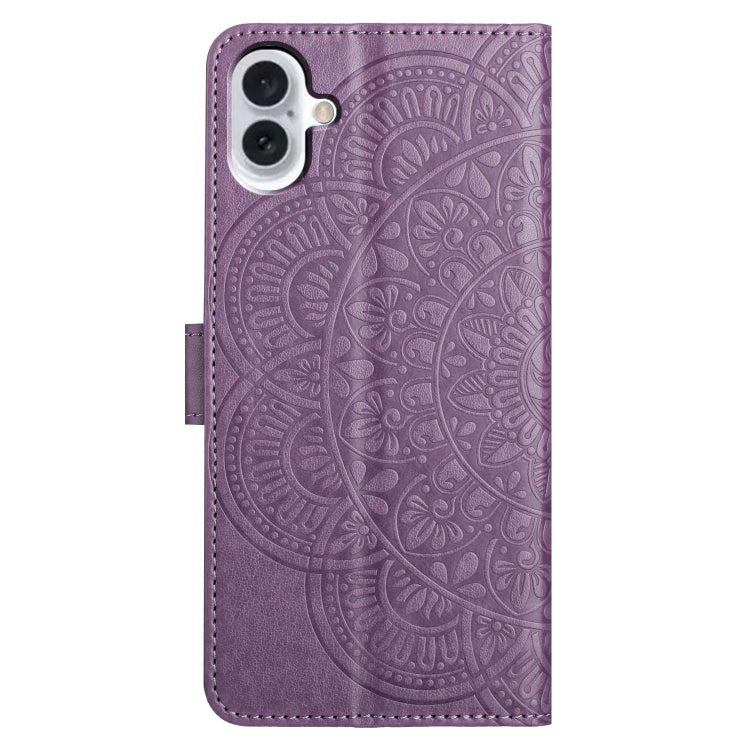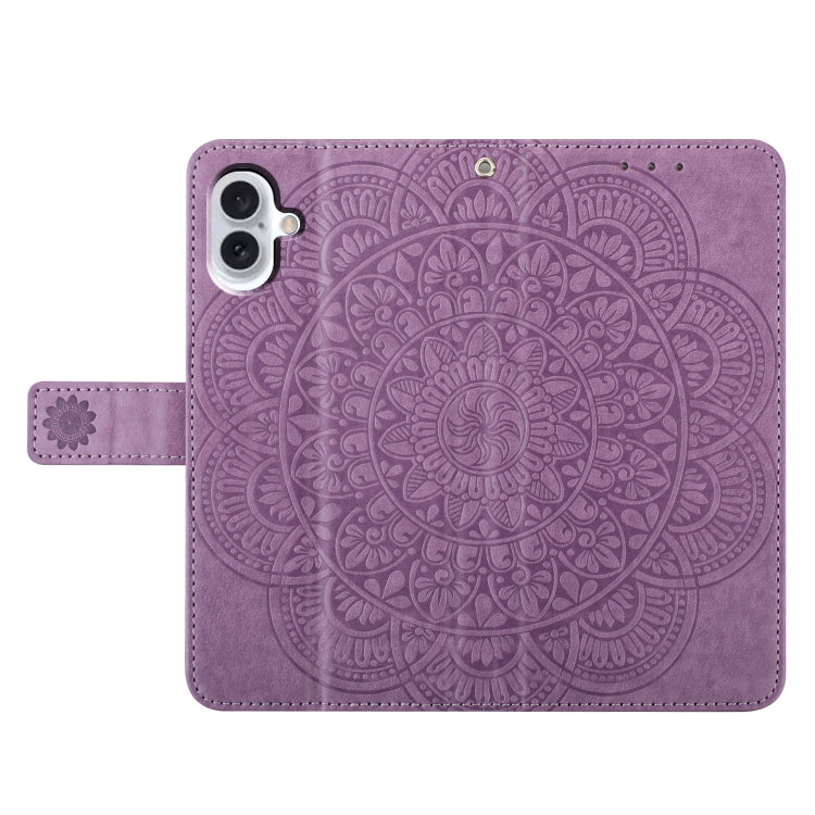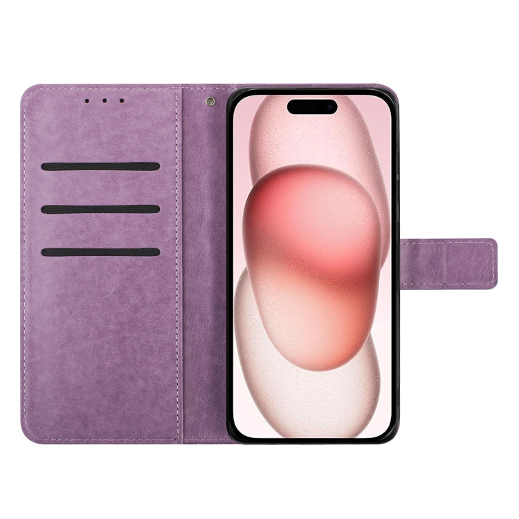 For iPhone 16 Plus Flower Embossed Leather Phone Case(Purple)